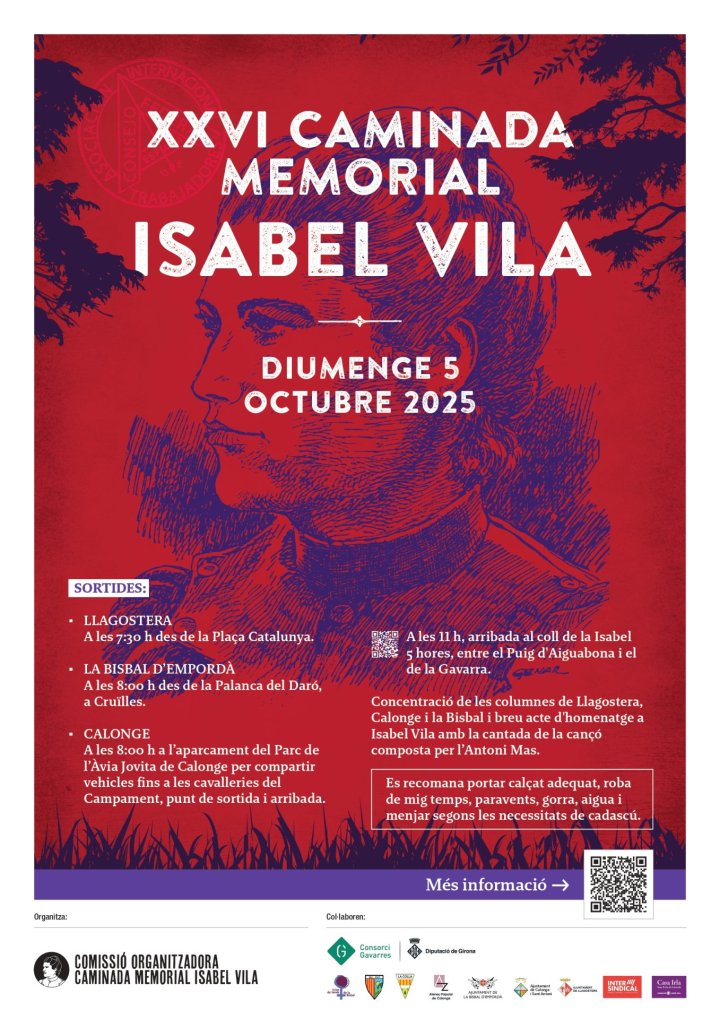 A les 11 h arribada al coll de la Isabel. Concentració de les columnes de Llagostera, Calonge i la Bisbal i breu acte d'homenatge a Isabel Vila amb la cantada de la cançó composta per l'Antoni Mas.