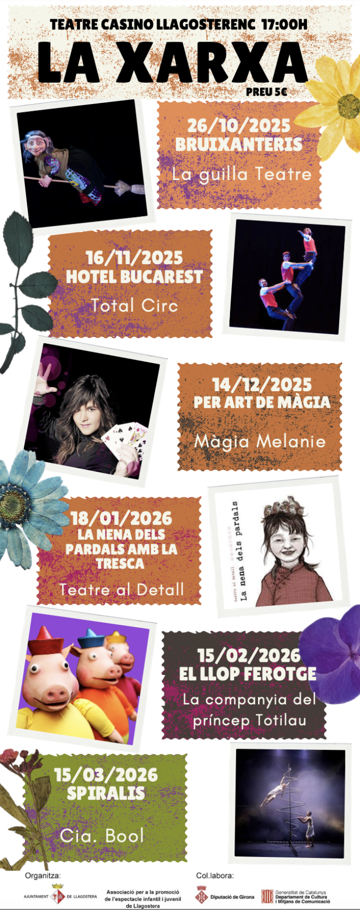 La programació 2025-2026 de La Xarxa a Llagostera presenta una nova temporada plena d’històries captivadores i espectacles familiars de gran qualitat que es podran veure al Teatre Casino Llagosterenc.