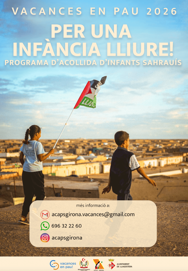 Llegir mésL’Ajuntament de Llagostera s’ha sumat a la iniciativa Vacances en Pau 2026 de l’Associació Catalana Amics del Poble Sahrauí. Aquest projecte pretén donar als infants Sahrauís la possibilitat de conèixer Catalunya durant els mesos de juliol i agost...