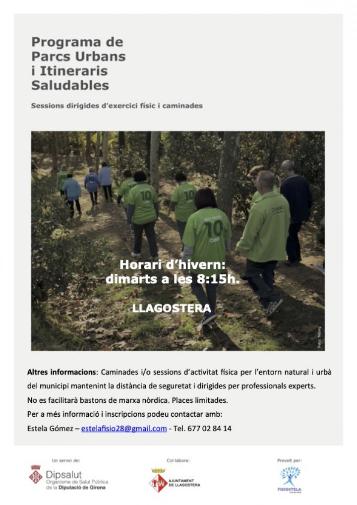 Llegir mésEl Dipsalut ha organitzat sessions d’exercici físic i/o caminades al municipi de Llagostera cada dimarts a les 8.15h. Aquestes sessions tenen lloc a l’entorn natural i urbà del municipi mantenint la distància de seguretat i dirigides per professionals experts. Aqu...