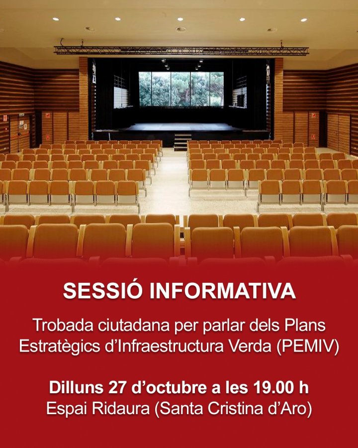 OctEs convoca la primera sessió informativa sobre els plans estratègics d’infraestructura verda a Santa Cristina d’AroLlegir mésEls ajuntaments de Castell d’Aro, Platja d’Aro i S’Agaró, Llagostera, Sant Feliu de Guíxols i Santa Cristina d’Aro, convoquen una primera sessió informativa totalment oberta a la ciutadania per presentar els quatre Plans Estratègics Municipals...