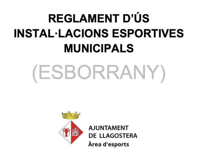 L’Àrea d’esports de l’Ajuntament de Llagostera està treballant en la redacció del reglament d’ús de les instal·lacions esportives. El reglament té per objecte la regulació de l’ús del conjunt de les Instal·lacions Esportives Municipals que serà d’aplicació a totes les persones i entitats que les facin servir, dedicant una atenció especial a la utilització i conservació de cadascun dels espais i dels serveis a l'abast de l'usuari i de l'abonat, així com especificar els principals drets i deures d'aquests, siguin individuals o col·lectius. Tot i que el document s’exposarà al públic un cop s’aprovi inicialment, convidem a la ciutadania i entitats a fer-ne propostes i suggeriments.